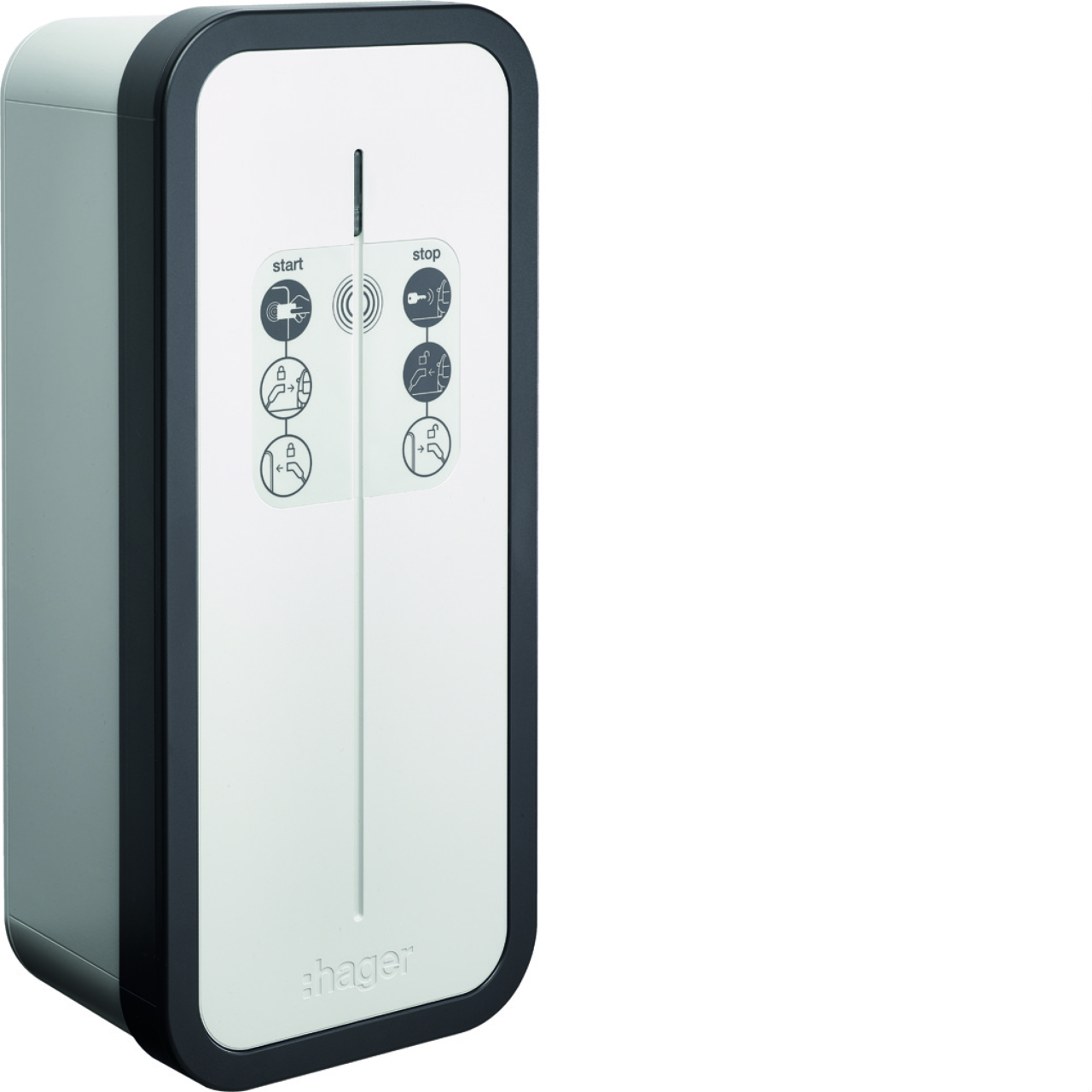 borne de recharge triphasé HAGER Witty idéale pour la maison ou l’entreprise, réglable de 2,3 à 22kW, accès sécurisé par clés